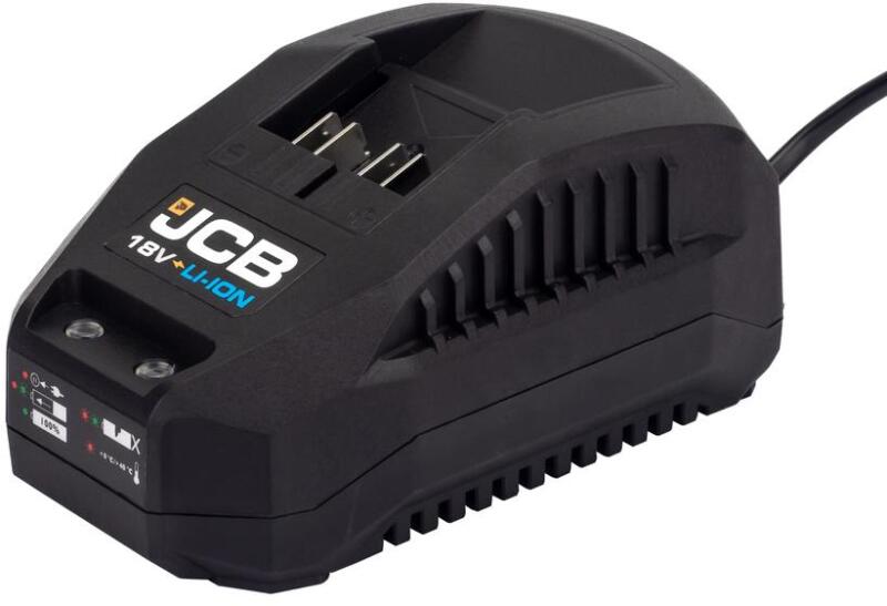 JCB 18VFC akkumulátor töltő 240VA JCB 18 V-os gyorstöltők biztosítják, hogy az akkumulátor a működési idejénél gyorsabban töltődik a maximális hatékonyság érdekében.